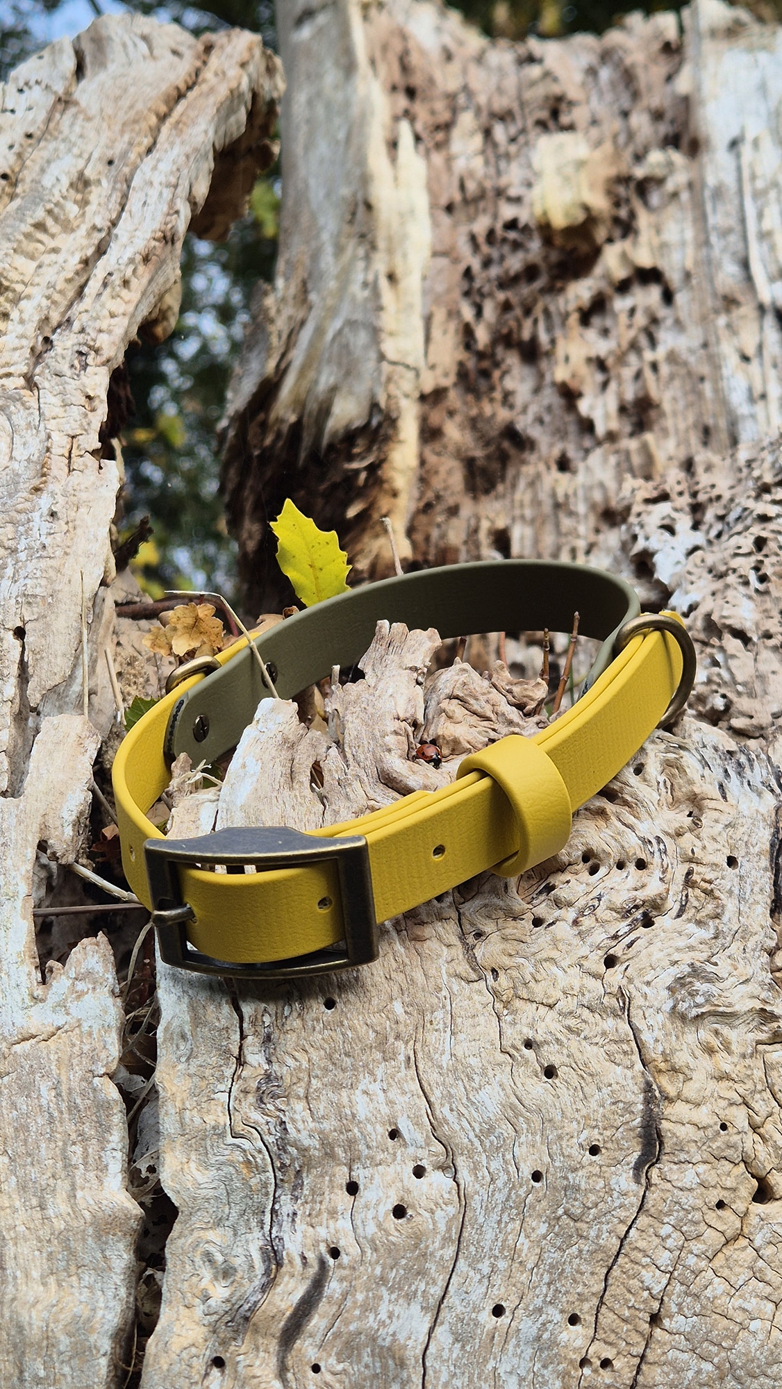 The mustard yellow glows with golden warmth, while the olive brings a grounding, natural balance inspired by moss, leaves, and rolling hills. Made from Biothane, offering the supple look and feel of leather with the durability, waterproofing and easy-clean nature of modern materials.