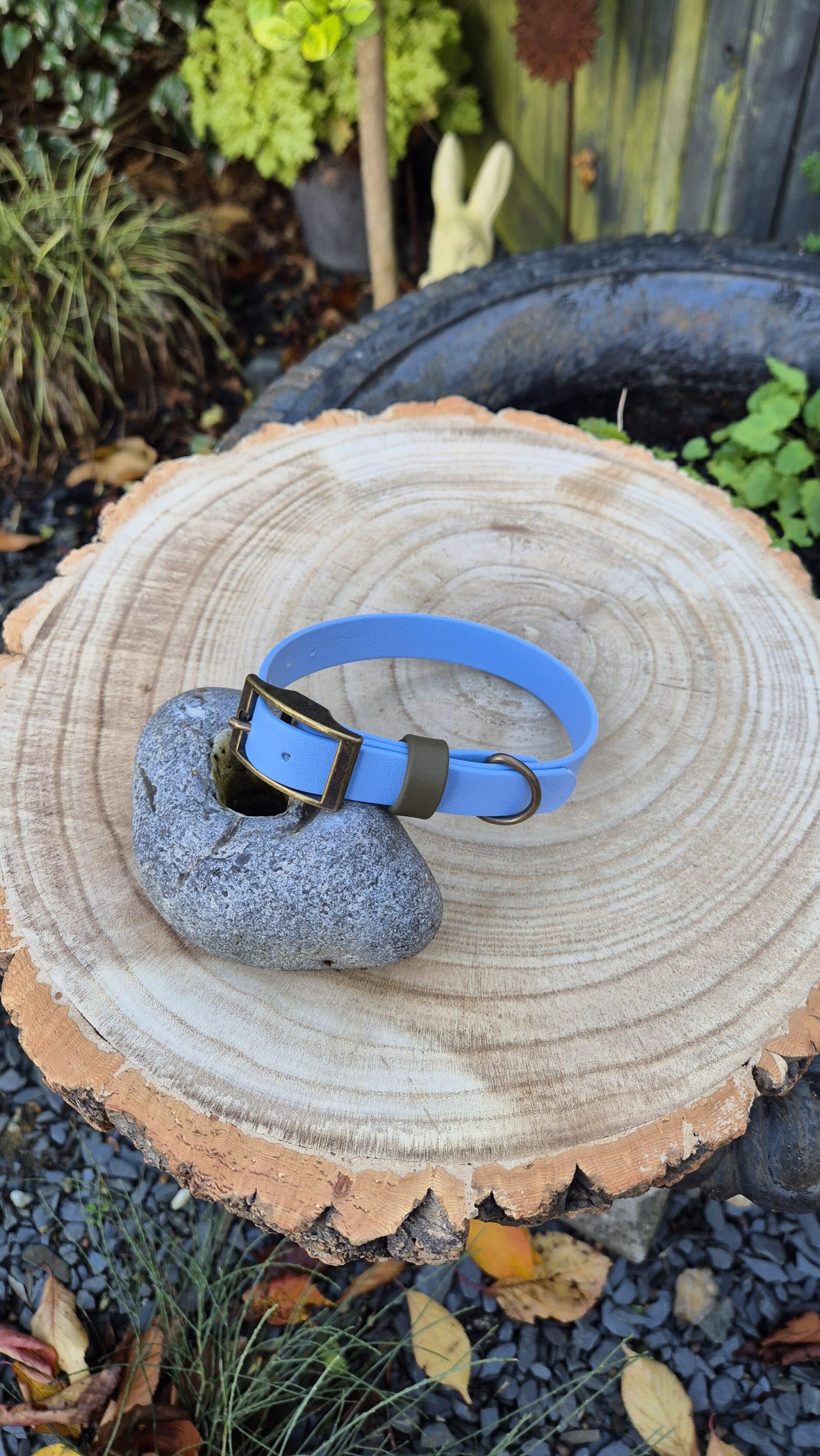Embrace the calm and rugged beauty of the coast. Crafted from durable, easy-to-clean Biothane, this collar pairs a crisp Arctic Blue with earthy Olive.